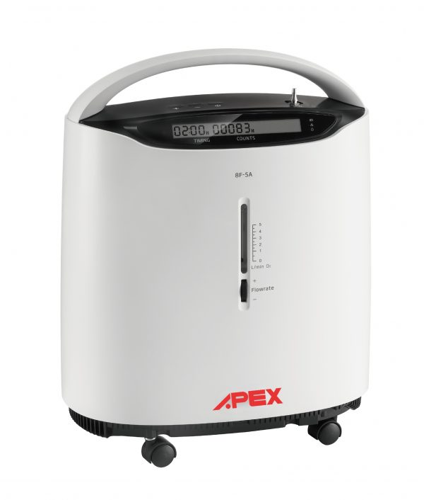 The Apex oxygen concentrator has different alarms to warn in case of failure. It offers a higher degree of patient safety with a compressor pressure relief valve.